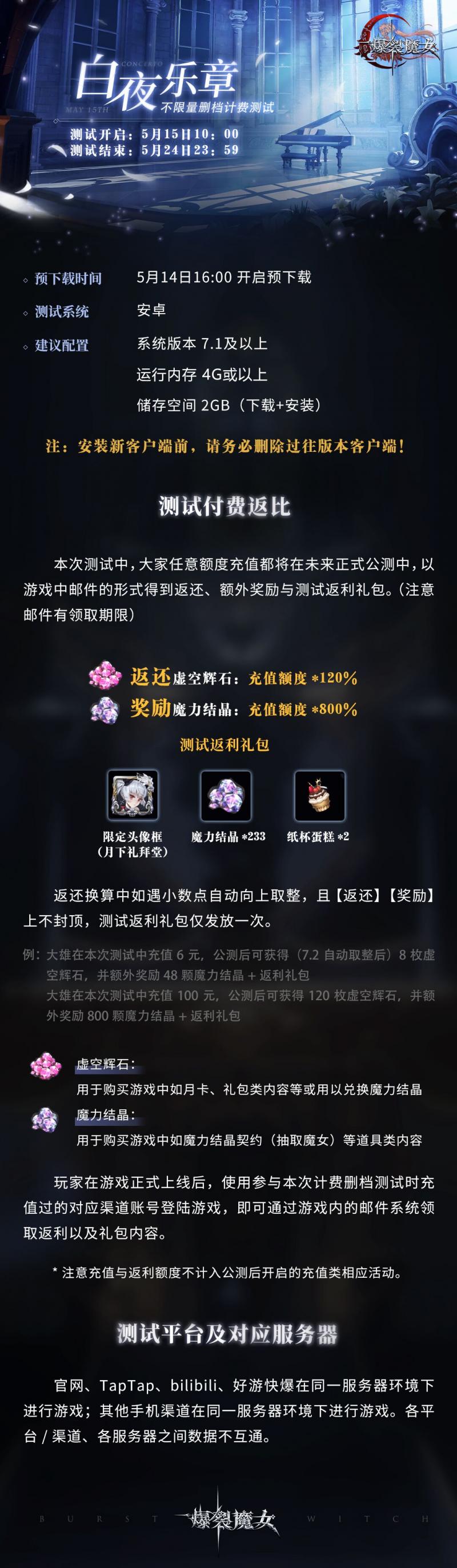 5月15日10:00~5月24日23 :59更多本次测试详细内容可以查看长图: